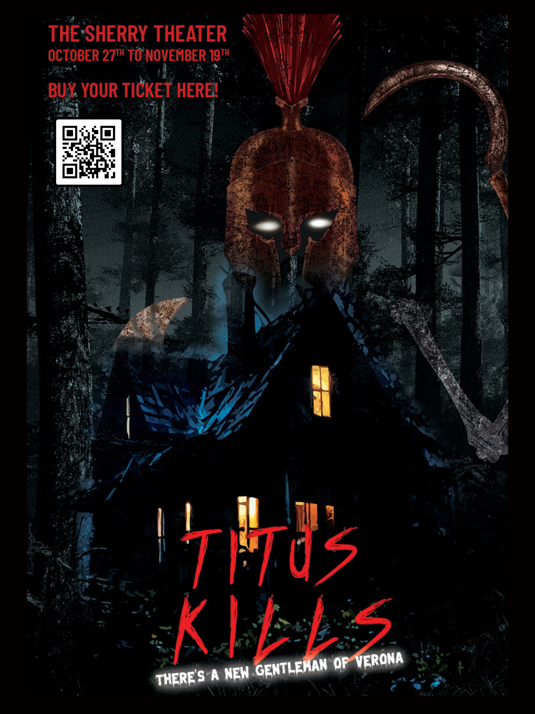 The year is 1984. Verona teens Parker, Val, Larry and Seth are ready for a guys' weekend partying in the woods of Milan. Little do they know, Julia, Parker's girlfriend, has dragged along her best friend Lucy to surprise them. Julia and Parker are on a break but she's sure this will get them back on track. When Val introduces Silvia to the gang, Parker is smitten by his best friend's girlfriend. As if the teenage drama wasn't enough, accidentally disturbing the remains of Titus Andronicus only makes things worse. And deadlier. And bloodier.In a mashup of Two Gentlemen of Verona and Titus Andronicus with a splash of 1980s slashers thrown in, Titus Kills premiered at the Sherry Theatre in October 2023.