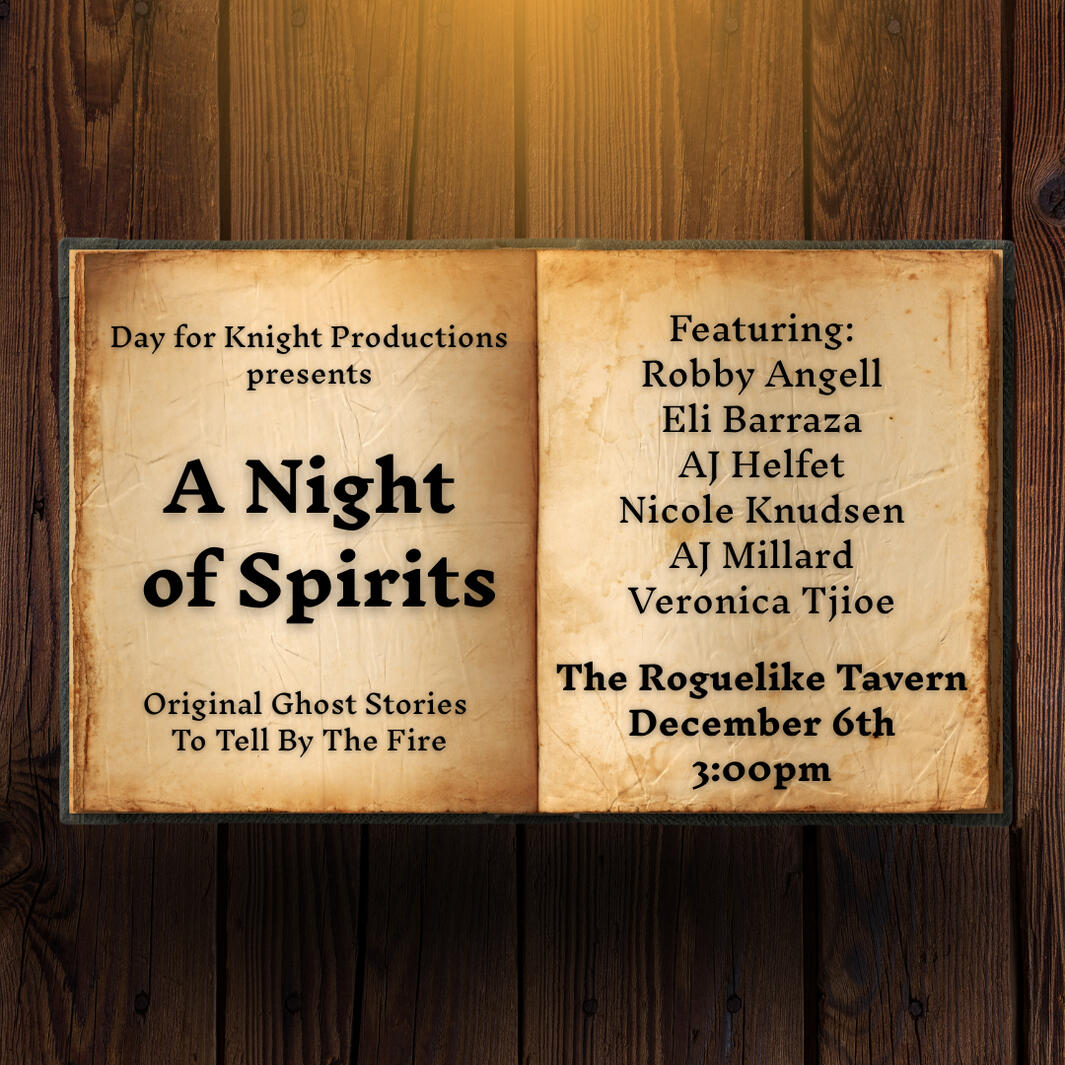 It's a dark and stormy night, and you've taken refuge in an old, abandoned manor. What better time than to take in some scary stories by the fireplace? For those of you looking for a more spooky time during the holiday festivities, we'd like to invite you to